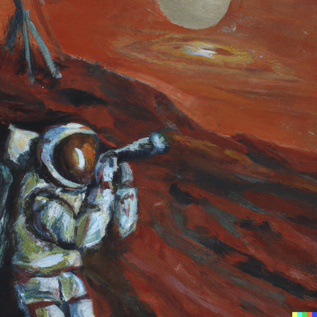 Two days before our competition began, OpenAI officially released DALL-E 2 to the public. We were so excited by this news, that we started to experiment with DALL-E 2 by using NASA and space-related keywords to generate images in a variety of artistic styles. We also tried the DALL-E 2 outpainting tool, using a selection of images gathered from the Perseverance Mars Rover Cameras (obtained through the NASA Mars Rover Photos API). We also started developing an image-to-music app to deliver the unique signatures of our AI-generated art in an audible form. Our results were... interesting.